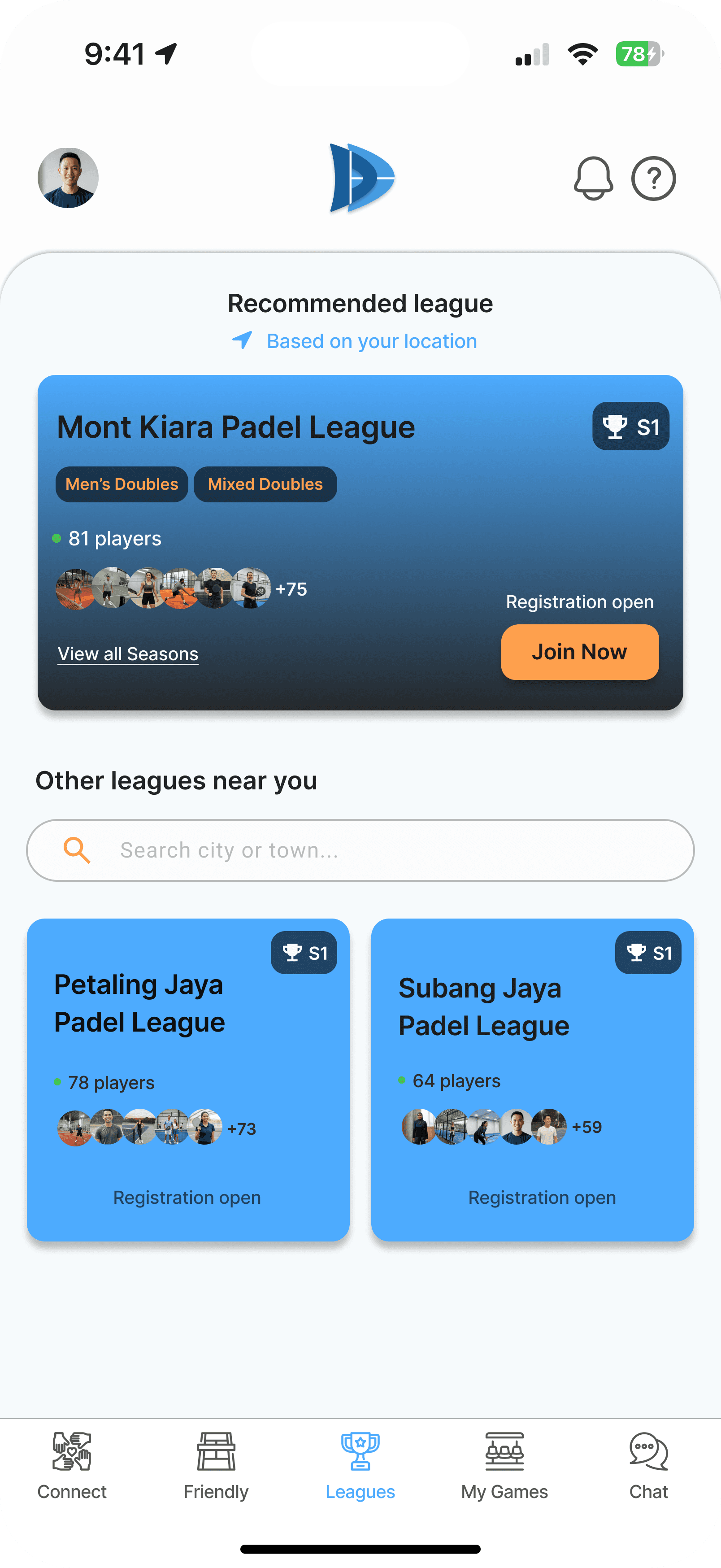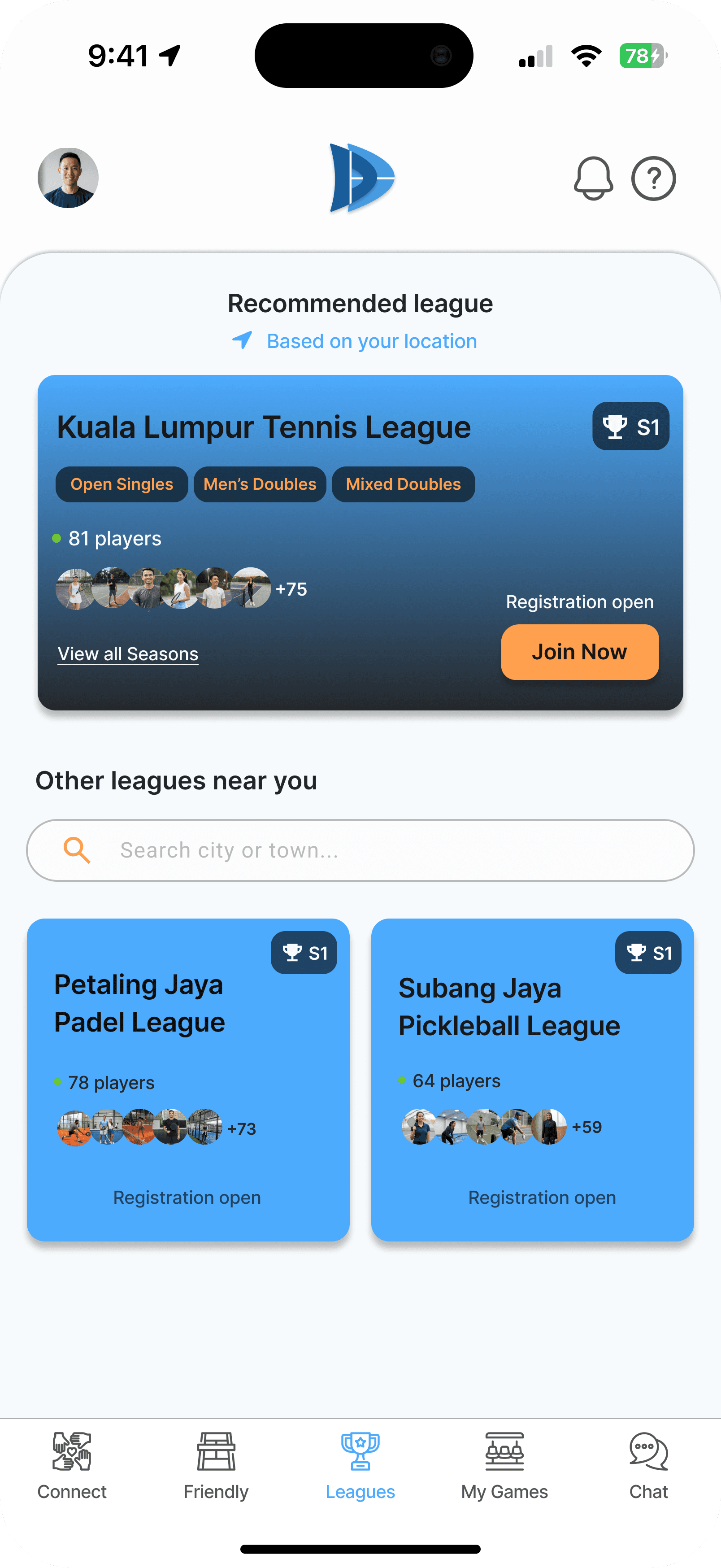 Your local league connects you with nearby players, making every match easier to plan.